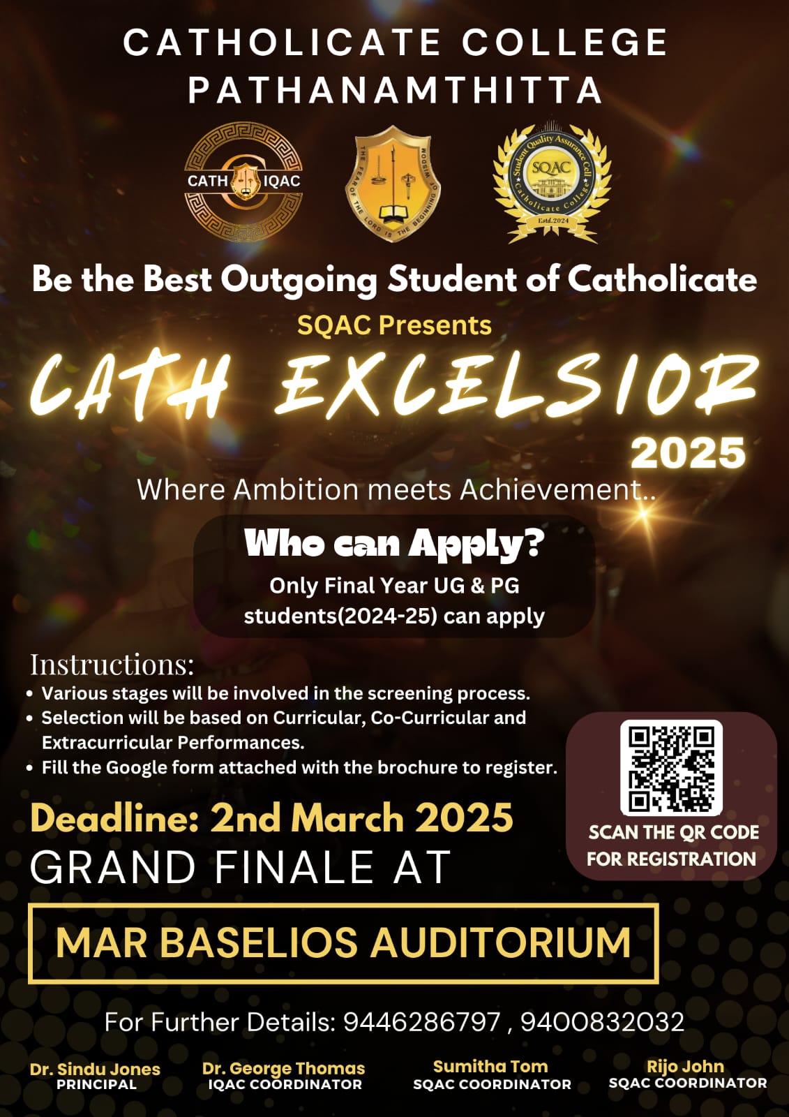 Excellence in Higher education is of vital importance to the whole education system today. Six years of re-accreditation is in fact a time to make an objective analysis of the excellence of the college in all spheres of activities - curricular, co-curricular and extra-curricular. Keeping pace with the changing trends in the higher education scenario, Catholicate College re-engineers and upgrades its activities during every academic year. A number of events signify the milestones of quality assurance. The ways and means to improve the quality of education by the management, the teaching, non teaching faculty, the students and parents are chalked out with the utmost care and implemented meticulously and effectively.