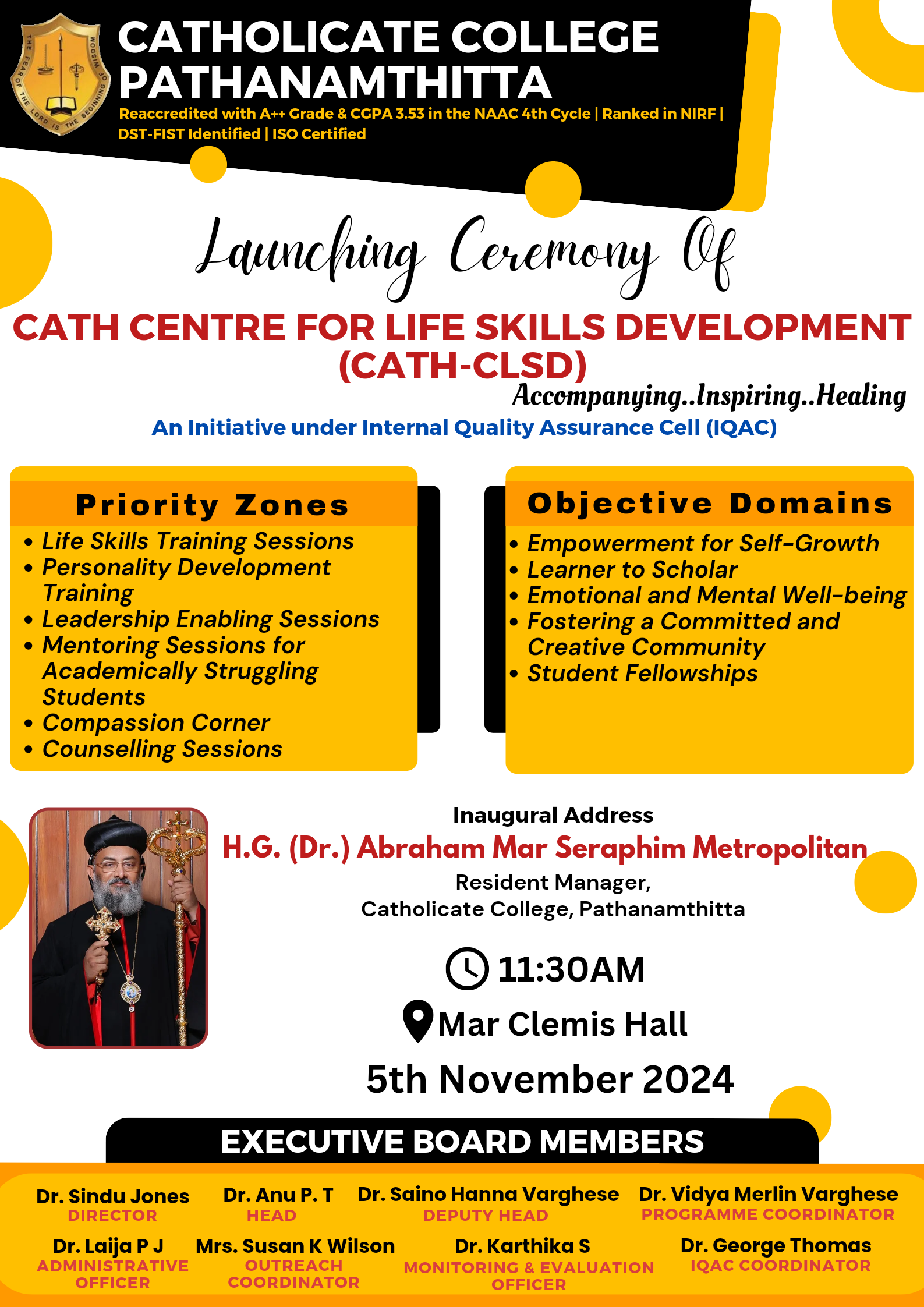 Catholicate College,Pathanamthitta is the pioneer educational institution under the Malankara Orthodox Church.Being the local manager,the college is blessed with talented professors and enthusiastic students.